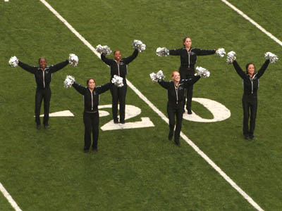 ![]() UH cheerleaders prepare to celebrate the quarter's end |