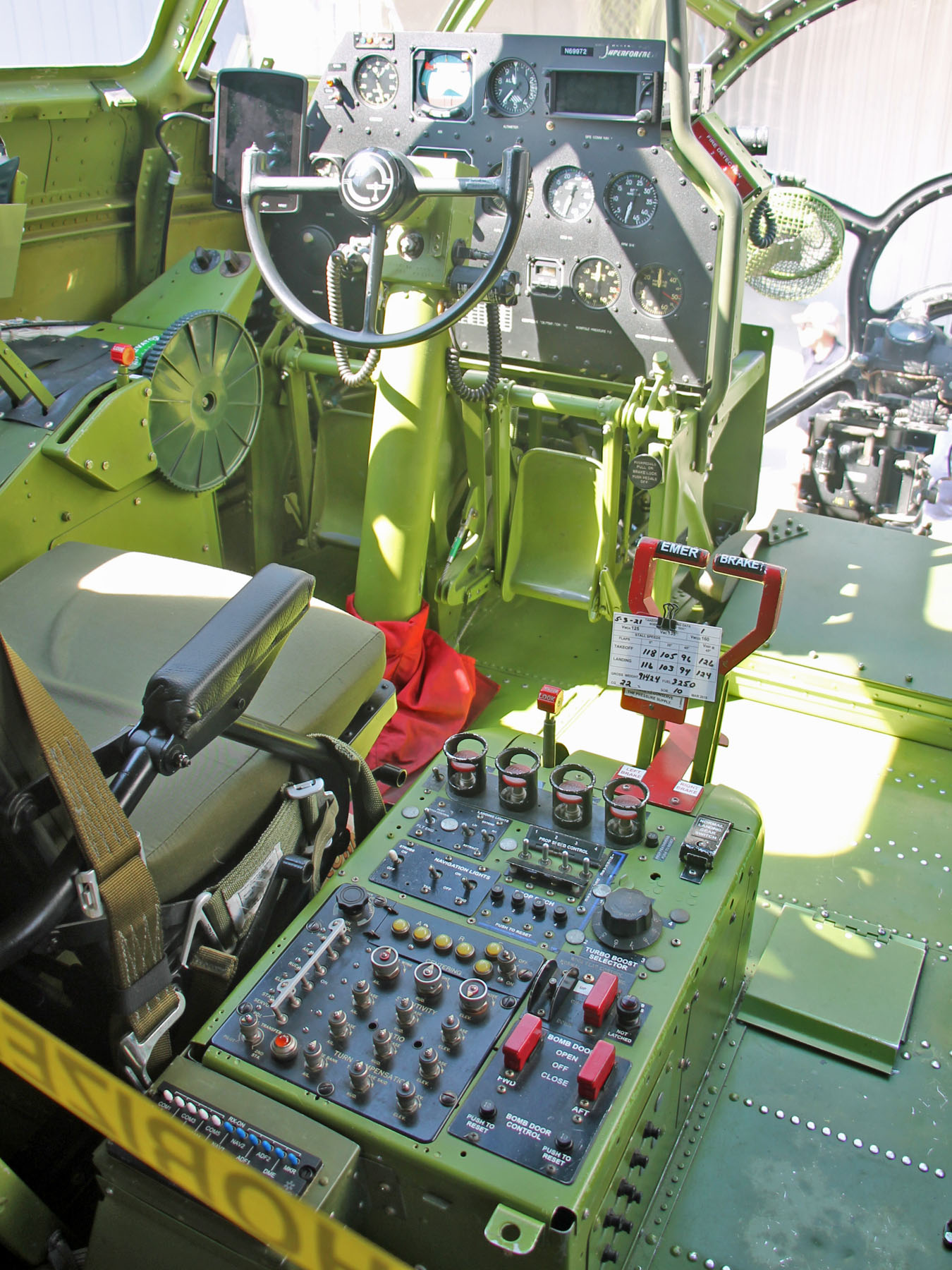 Turn around and view the pilot's seat left, bombardier station forward and copilot's seat on the right