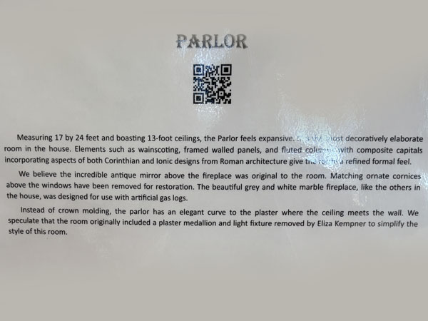 Go back across the Reception Hall to the Parlor, left of the entry