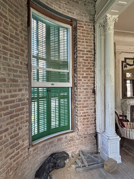 Rotten wood trim removed from around the curved original windows