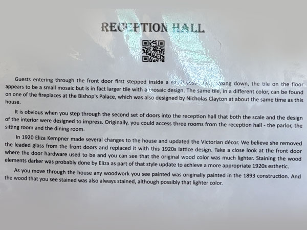 Did not take a photo of the Reception Hall desk w/docent talking to me.