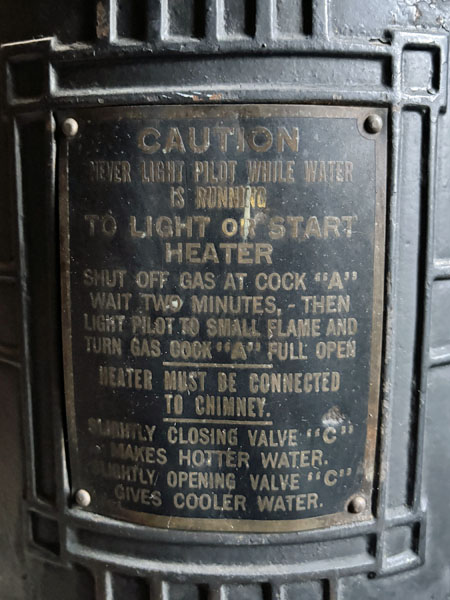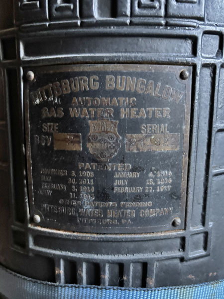 Industrial nameplate of the small water heater pictured prior