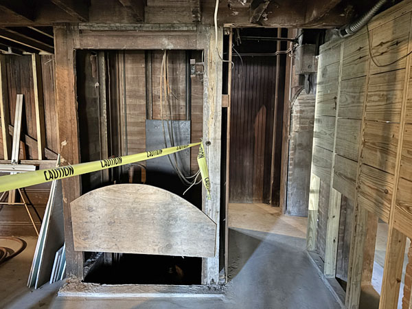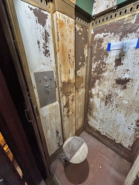 Original dumbwaiter replaced in 1930 with people lifting Otis Elevator