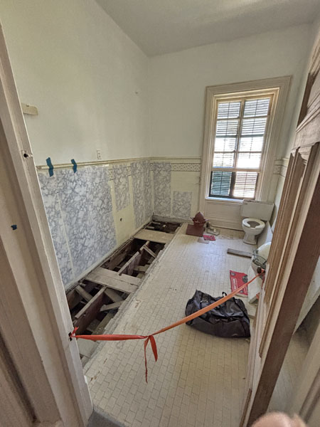 Original family bathroom floor is being repaired & tiled removed for now