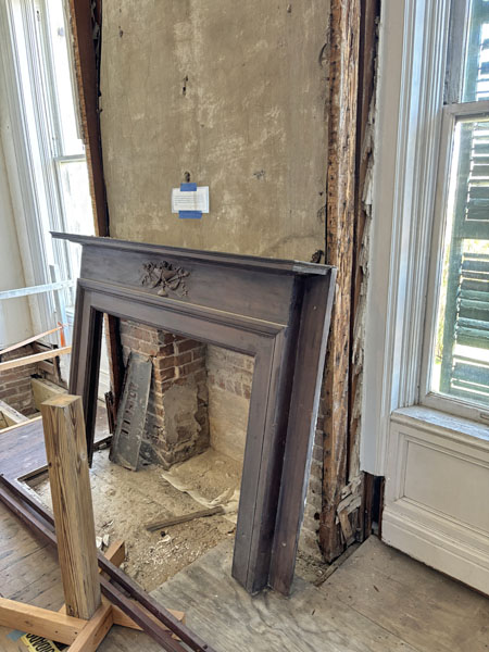 Wood around the fireplace was damaged by termites and will be replaced