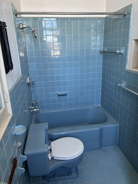 The blue bathroom must have been added after the 1950s