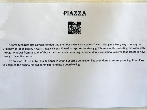 Clayton termed the the 2nd floor open porch as a piazza