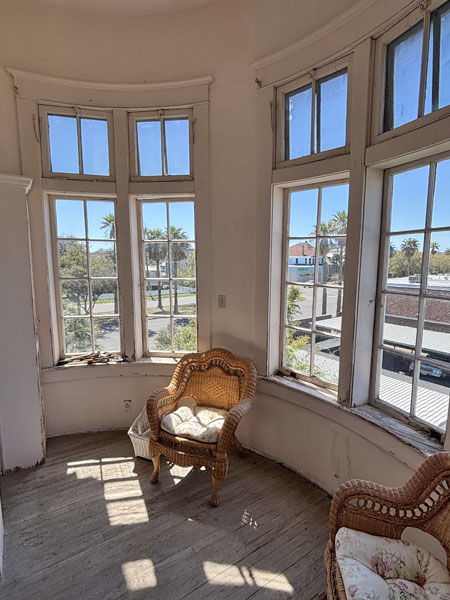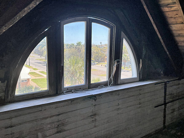 West side 3rd floor window over Daisy's 1920 enclosed bedroom patio