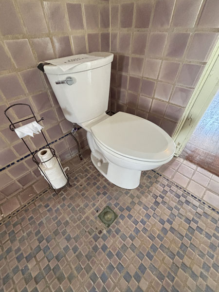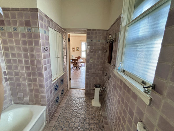 Pink bathroom added in the 1920s, placed above the Sunroom