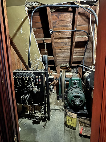 Look inside the closet hosting the elevator lift machinery
