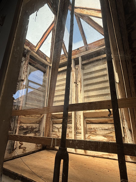 Laylight area & cupola w/plywood over stained glass above grand stairway