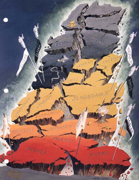 - Amos and Hosea banners on Jeroboam II segment - These prophets warn against impending dangers of spiritual laxness in Israel during Jeroboam's age of gold.