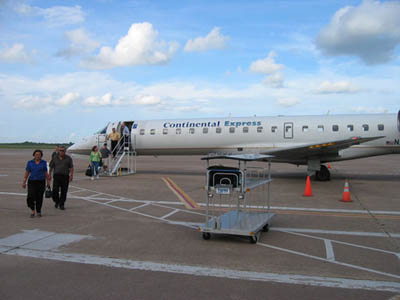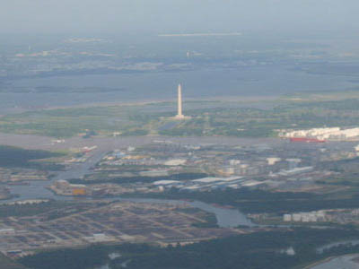 ![]() IAH - EFD flight passes by the San Jacinto Monument |