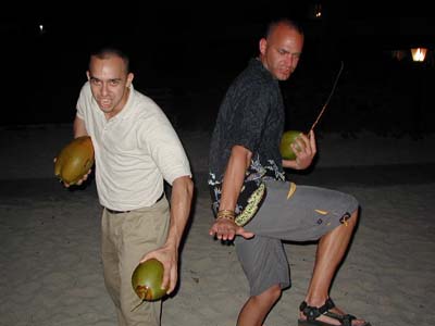 ![]() The Andys do their best coconut Heisman poses |