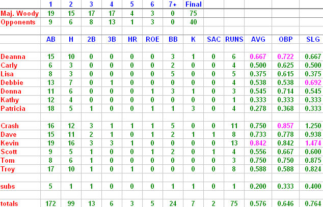 Woody's put up their greatest offensive performance in 6 seasons and only gave up one two base walk while