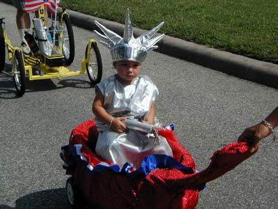 ![]() Miss Liberty takes a wagon ride |