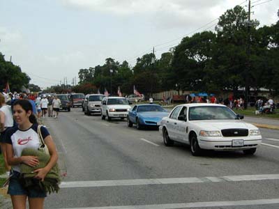 ![]() Police car ends parade and leads traffic |