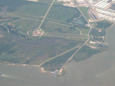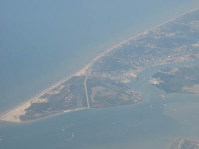 ![]() Galveston Island with ferry route in the foreground |