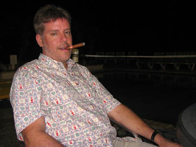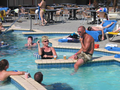 ![]() David sneaks over to pool to catch the usual afternoon activities |