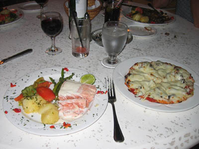 ![]() David has his first meal out in seven days. Salmon with cream and a pizza appetizer at Pastafari Italian Restaurant |
