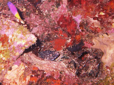 ![]() Spotted moray hides from a fairey basslet |