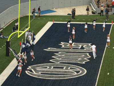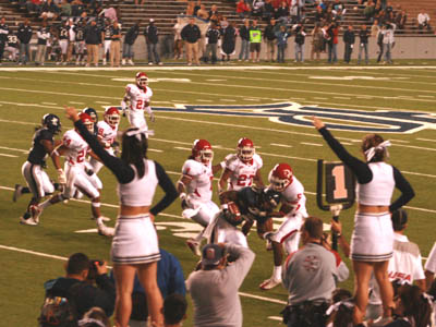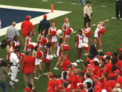 ![]() UH cheerleaders prepare to celebrate the quarter's end |