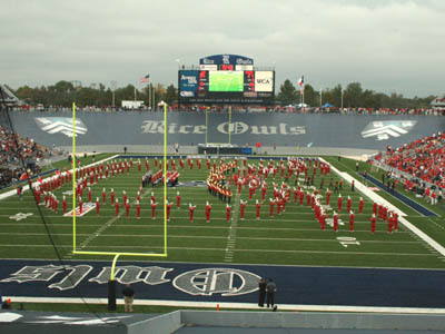 ![]() Rice dancers perform before the following kickoff |