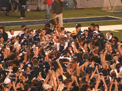 ![]() The Bayou Bucket makes its way to the Rice players |