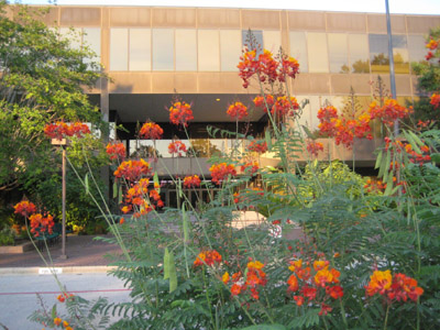 ![]() Walk toward the back (student) entrance to the Bayou Building |