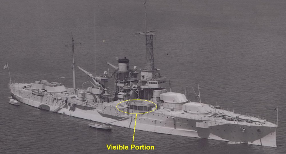 ![]() The most visible feature is the barbette to gun turret #3 | |