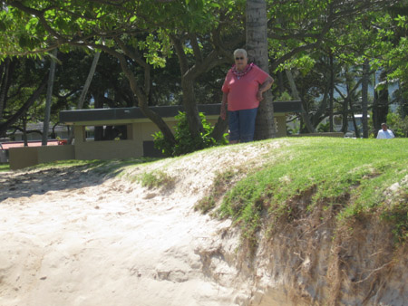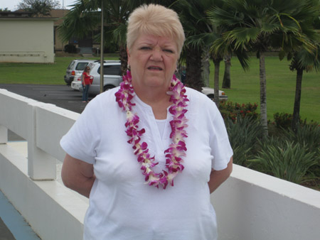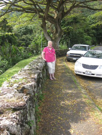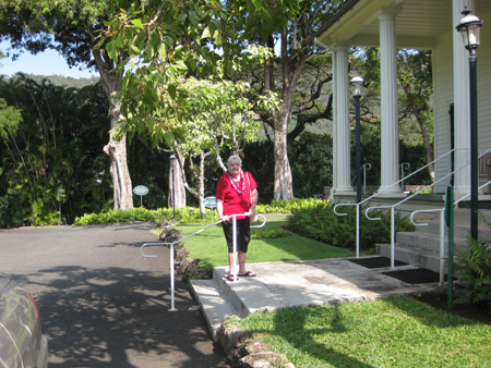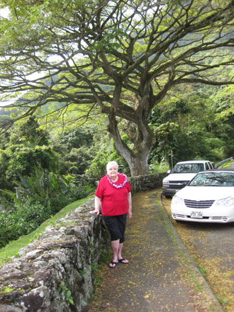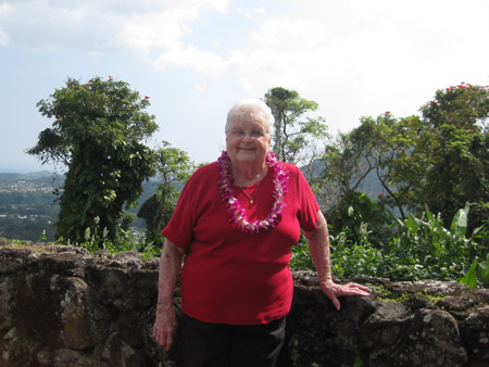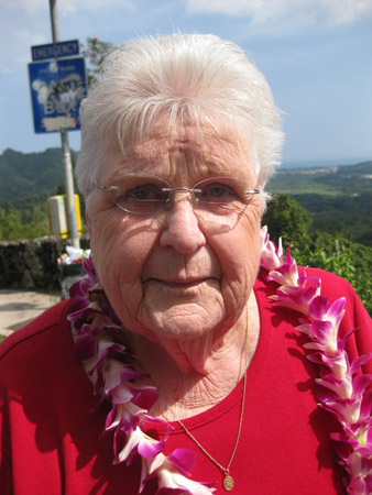 ![]() Granny enjoys the view with a pretty lei around her neck |