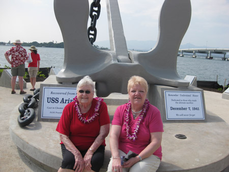 ![]() Granny & Nena pose with the USS Arizona's anchor | |