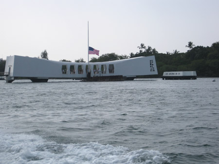 ![]() A final look back at the USS Arizona Memorial while crossing the Ford Island bridge | ||