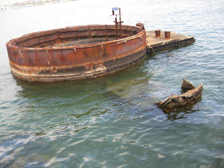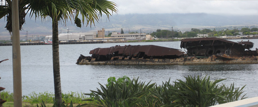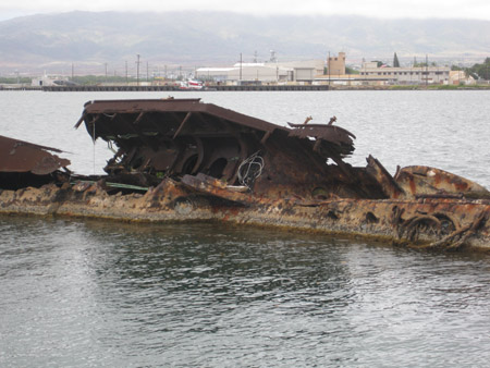 ![]() Target Ship Utah (AG-16) was the first ship hit in the attack on Pearl Harbor and rolled over minutes later trapping over 60 men inside. The ship was pulled back towards shore in 1944 for salvaging and now rests at a 38 degree angle | ||