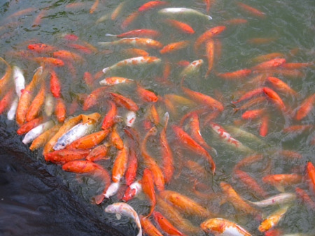 ![]() Feeding the koi in the irrigation pond |