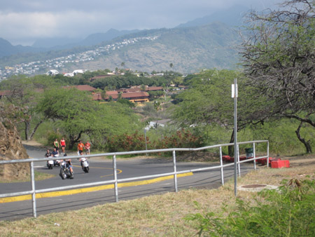 ![]() Watch for cars & don't fall over the rail at Diamond Head |