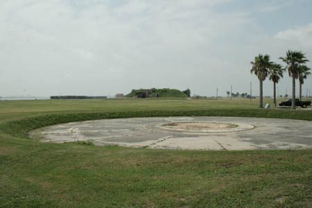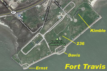 Coast Artillery was stationed at Fort Travis, located at Bolivar Point, commanding the northern side of the entrance to Galveston Bay.