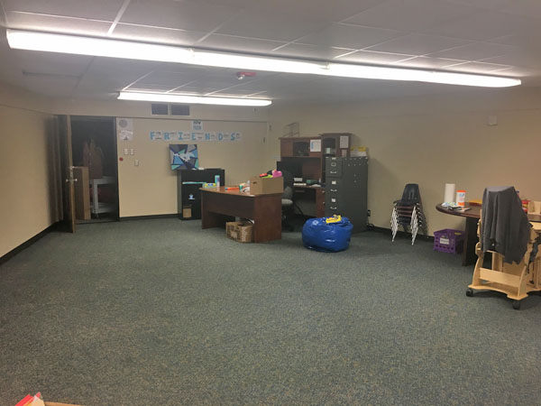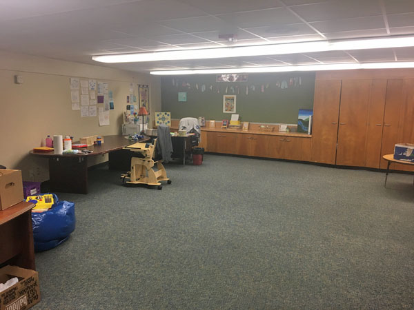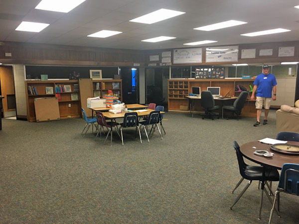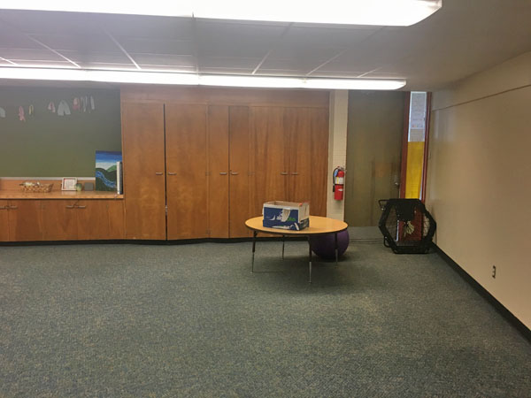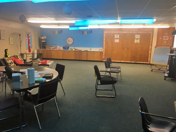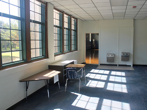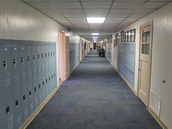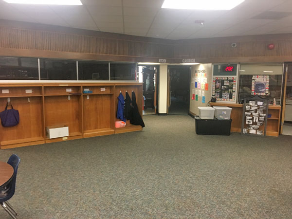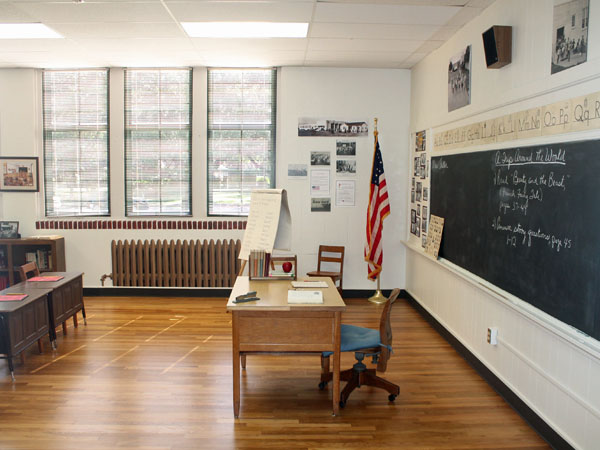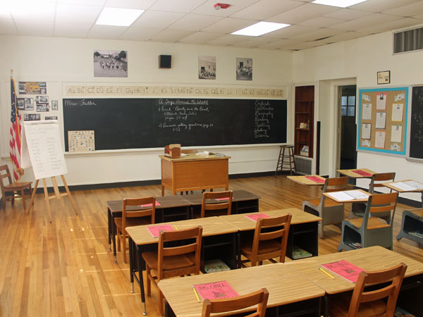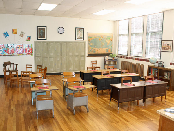 With lockers painted on the back wall and Big Chief tablets at each desk