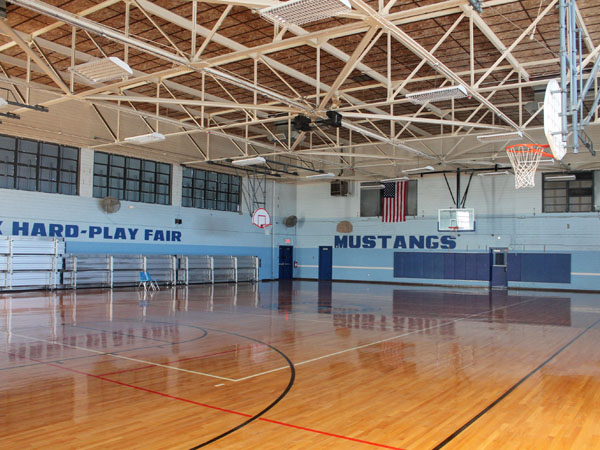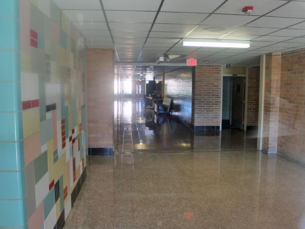 Zoom on the plaque states the school was a Public Works project back in 1939