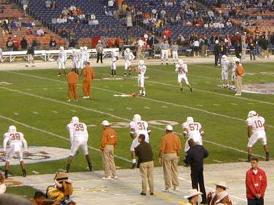 ![]() The first longhorn players come out to loosen up |