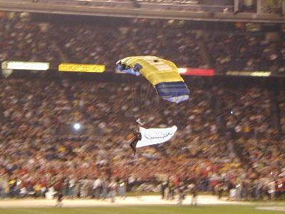 ![]() Army paratroopers drop in with the game ball |