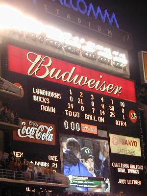 ![]() Ducks kickoff to the Horns in their first Holiday Bowl |