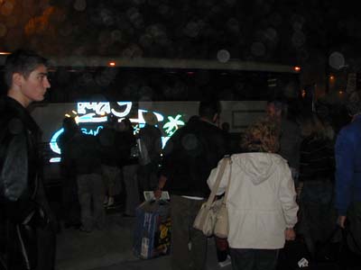 ![]() Hours later, we head to the bus for a long ride to the Ontario Airport out of the fog |
