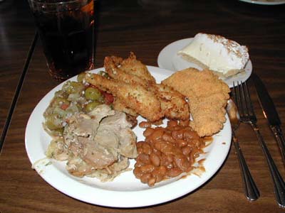 ![]() Frog legs, catfish, pork, beans, okra gumbo |