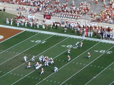 ![]() Texas kicks off to start the game |