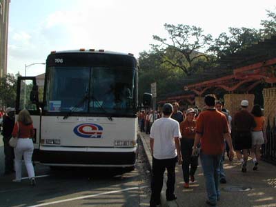 ![]() Houston Texas Exes bus awaits at the Alumni Center |