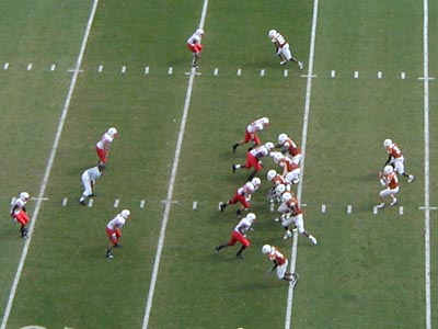 ![]() Vince Young hands off to Cedric Benson |