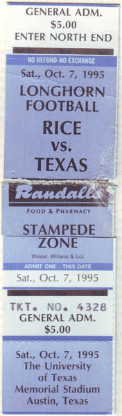 | 11/23/96 | Rice vs Tulsa | Rice Stadium | 42 - 14 | 7th Win for Rice! |