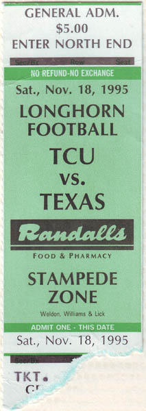 | 10/25/03 | TCU @ Houston | Robertson Stadium | 62 - 55 | Frogs stay undefeated, 8-0 |