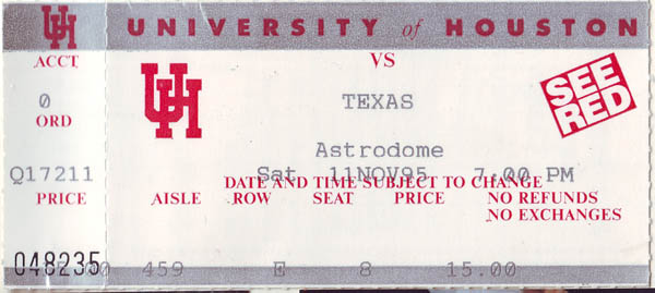 | 21 | lose | 14-7 | 1-1 | Nov 07 | - | U of Houston @ Astrodome | 40-60 |
